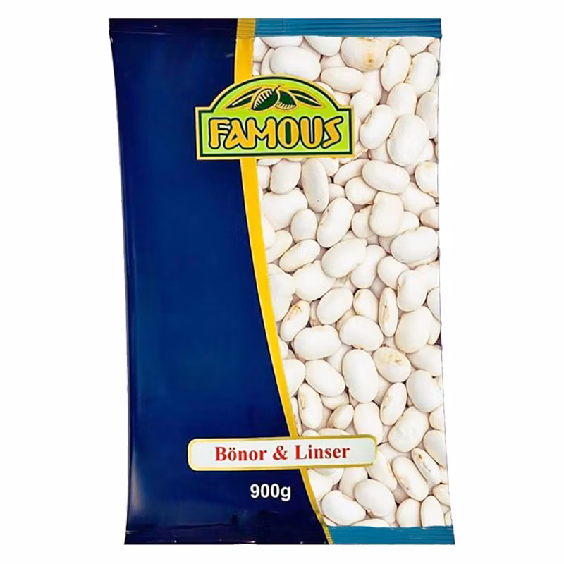 Famous torkade vita bönor är en klassisk ingrediens som ger näring och smak till olika rätter. Dessa bönor är naturligt rika på protein, fiber och viktiga näringsämnen, vilket gör dem till ett hälsosamt val för många måltider.
