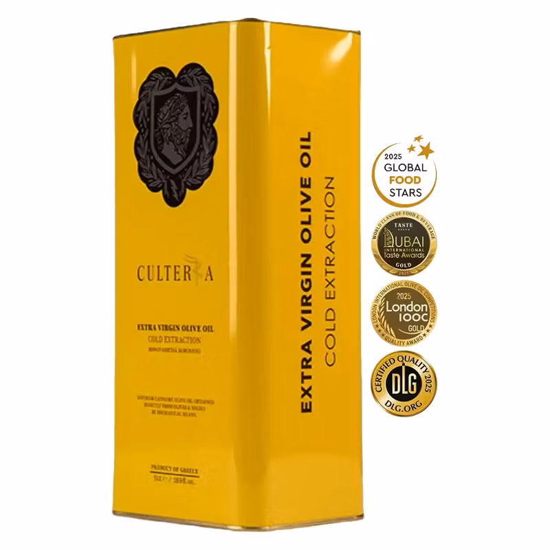 Förhöj dina maträtter med grekisk lyx. Klicka hem Culterra Extra Virgin Olivolja 5L från Etnomat.se nu!