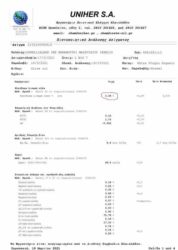 Aciditet 0,38. Upplev den exceptionella smaken av Ophellia Premium Extra Virgin Olivolja 4lt!